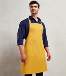 Easy care fabric. Self fabric neckband with sliding, adjustable buckle. Self fabric 90cm ties. Industrial laundry 85°C. Domestic wash 60°C.