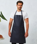 Acrylic coating for a waxed effect giving water repellent properties. 100cm ties and a brace style buckle fastened neckband with adjuster. Contrast jeans stitching and fabric features including, patch pocket and cloth holder. Measuring 86cm long and 72cm wide.
