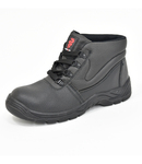 Leather upper. EN ISO 20345: 2011 SIP SRC. Steel toe cap (200 Joules). PU sole. Oil resistant sole. Steel midsole. Anti-static. Energy absorbent heels. D-ring fastening. Branded tab.