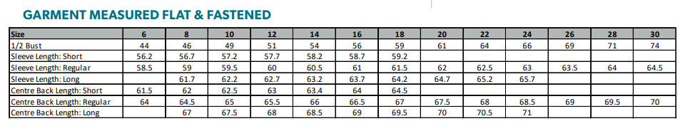 Centre back length at size 12R = 65.5cm