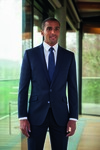 Slim fit, single breasted, 2 button jacket, side vents, slim lapels with saddle stitching, piano faced interior with slim pocket jets.