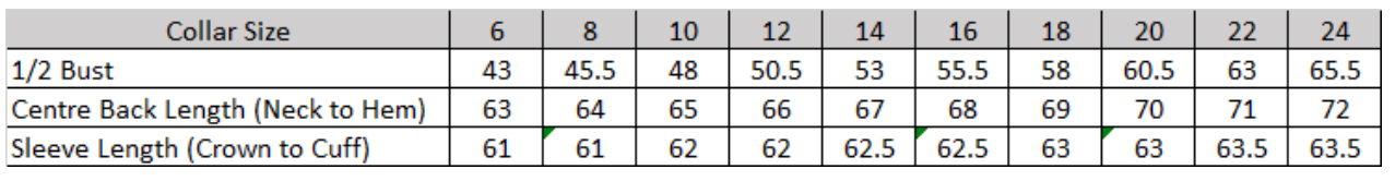 Long sleeve, single cuff, fly front, button up collar, taped seams