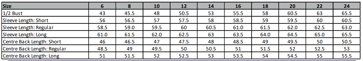 Tailored fit, colarless styling with curved splits, 2 internal jett pockets, curved front/back seams