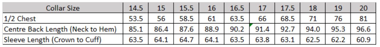 • Sizing Details