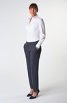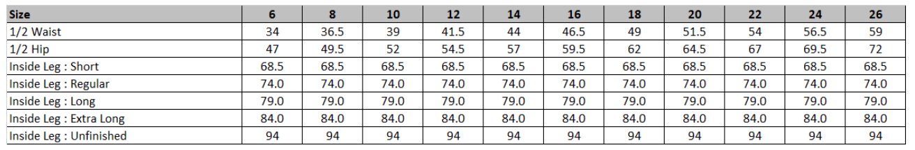Slim leg, front hook fastening, 2 side pockets, mock hip pockets, feature jogger waist.