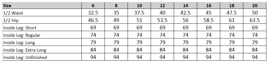 Grown on waistband, zip fastening with hook & bar, 2 side pockets with welt openings, 4 darts front and back.