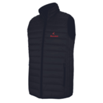Contrast polyester lining, navy has self colour. Warm and ultra-lightweight. Full length low profile zip. Two front zip pockets. Bound collar, armholes and hem. Packs away into storage bag.
