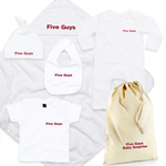 Comes in a drawstring bag with Five Guys Baby Surprise embroidery