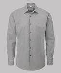 Black and white gingham checked work shirt with classic collar, long sleeve with twin button adjustable cuff.