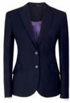 Semi fitted, 2 button jacket, lapel & pocket contrast detail, 1 inside pocket, centre vent, tailored back panels