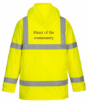 C4ECROM0244 Hi-Vis Bomber Jacket - Welling Sq transfer FLB + heart of the community Back
