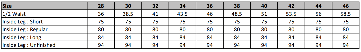 Classic fit, Flat front, side pockets, twin hip jett pockets with button, telephone pocket, stretch waistband