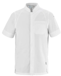 The BASIL professional chef's jacket stands out with its mesh inserts and its very modern style. Very pleasant to wear, it is made of a twill main fabric: 50% cotton 50% polyester and 79% polyester 21% cotton for the knits. This straight-cut men's kitchen jacket adapts to all body shapes and offers very comfortable ease of movement. It asserts its elegant look with a small stand-up collar inspired by ready-to-wear and its mesh inserts at the shoulders, back and wrists. The BASIL professional kitchen jacket closes with hidden grippers and is decorated with a chest pocket with piping.