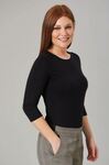 95% Viscose, 5% Elastane. 3/4 Sleeve women's stretch top, rounded neckline