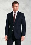 100% wool. Single breasted, 2 patch pockets, breast welt, side vents, hand stitched edges Single Breasted, 2 button front, side vents, 4 interior pockets, 2 patch pockets, out breast welt, 2 button cuff, metal buttons, classic fit